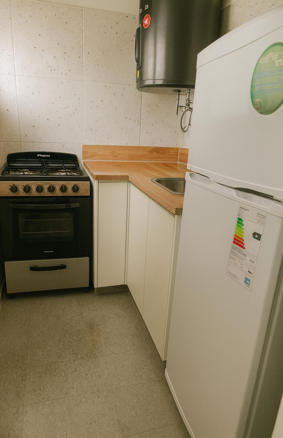 Un depto en complejo de Palermo comprado a buen precio por padres del interior para sus hijos que estudian en CABA. Se hizo una puesta a nuevo integral y rápida, optimizando guardado y uso diario. Quedó funcional, moderno y listo para estrenar en poco tiempo.