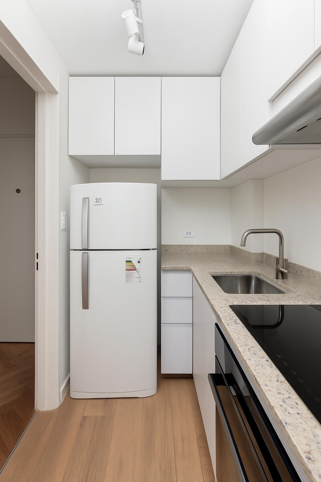 Un depto en complejo de Palermo comprado a buen precio por padres del interior para sus hijos que estudian en CABA. Se hizo una puesta a nuevo integral y rápida, optimizando guardado y uso diario. Quedó funcional, moderno y listo para estrenar en poco tiempo.